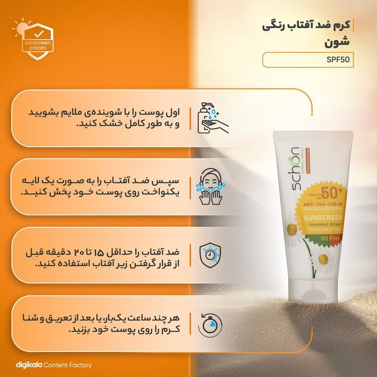 کرم ضدآفتاب رنگی فاقد چربی شون با رنگ طبیعی + SPF50