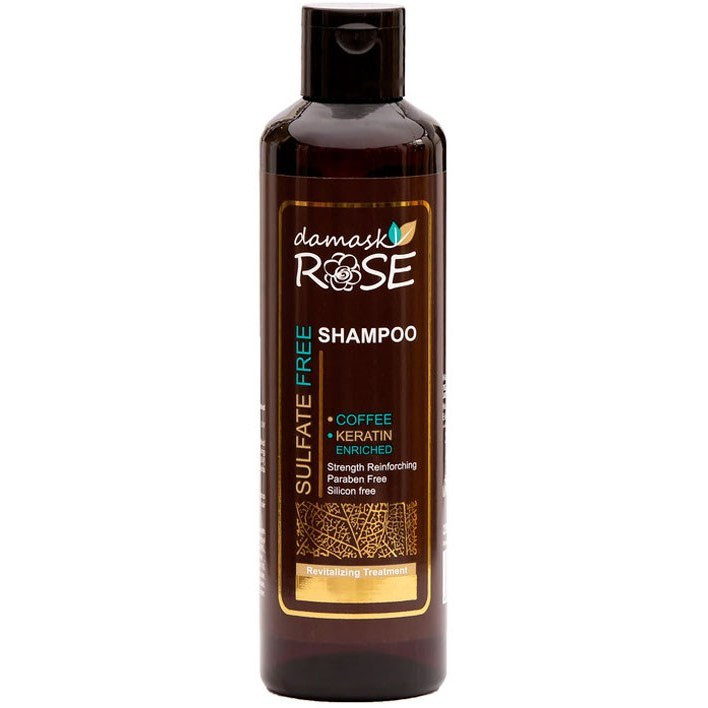 شامپو بدون سولفات داماسک رز مدل KERATIN حاوی کراتین و کافئین حجم 250 میل